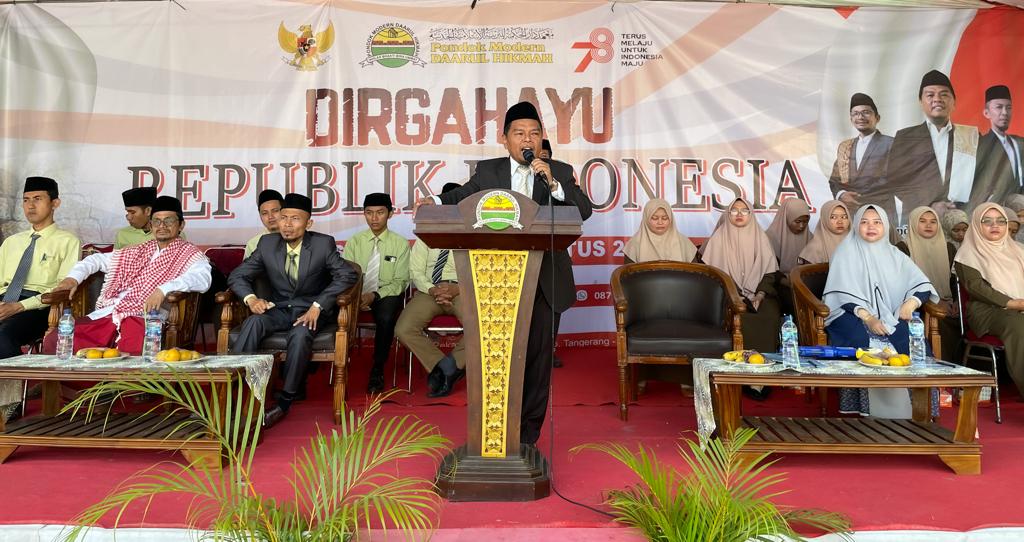 Pondok Modern Daarul Hikmah, Sukadiri, Kamis (17/8), kembali melangsungkan upacara pengibaran bendera Merah Putih dalam perayaan Hari Kemerdekaan ke-78 Republik Indonesia. Suatu kebahagiaan yang luar biasa ikut berpartisipasi menyemarakkan peringatan kemerdekaan Republik Indonesia.